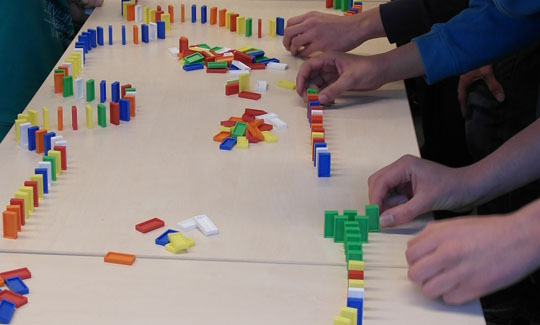 Durch gemeinsame Teamarbeit innerhalb Ihres Teams und in Zusammenarbeit mit den anderen Teams wird der Domino Day gestartet.